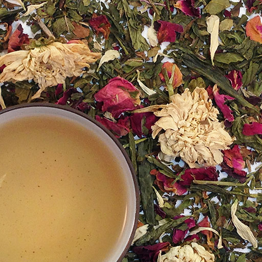 Inflammation again? You bet! Managing inflammation ranks as essential for massaging the worst effects of seasonal allergies. That’s one reason we offer our Chrysanthemum green tea as an allergy-season hero. The flower, revered in traditional Chinese medicine, gets touted as an inflammation fighter. But chrysanthemum also supports lung health—important for those who get slammed by pollen sensitivities.
