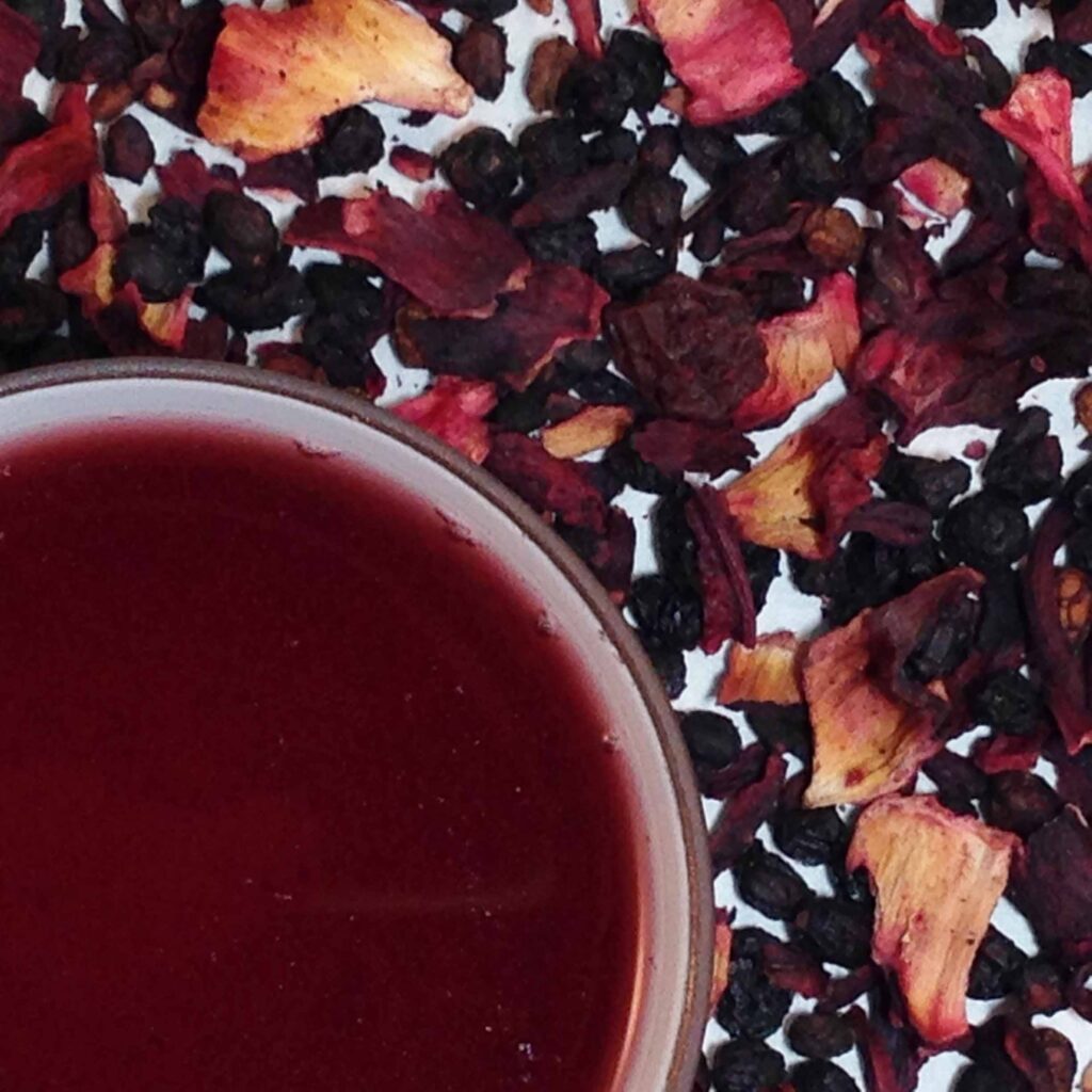 With so much sugar, butter, eggs and more during the fall and early winter, our bodies need a hand. And our Rhapsody of Berries blend delivers—thanks to elderberry. It’s considered a superfood, and boosts immune response while also helping the body to detox and cleanse. Fevers, cold, flu symptoms—all of them have traditionally been met with elderberry concoctions, for generations. It also contains hibiscus, which delivers a wallop of vitamin C. So drink Rhapsody of Berries while you work your way through those Halloween candies—and keep on sipping until 2026.