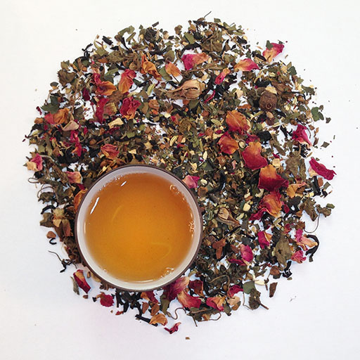 This caffeine-free beauty is one of the selections in our Colorful Colorado collection, a series of wonderful teas in brightly-branded boxes. We tried to capture some of the essences of deserts—from the American Southwest to the Mediterranean—in this blend. So it’s got aromatic rose petals, herbal rosemary and sage, floral lavender and bright lemon balm. It’s a delicious, soothing tea, one you will appreciate while dining on top of a mountain.