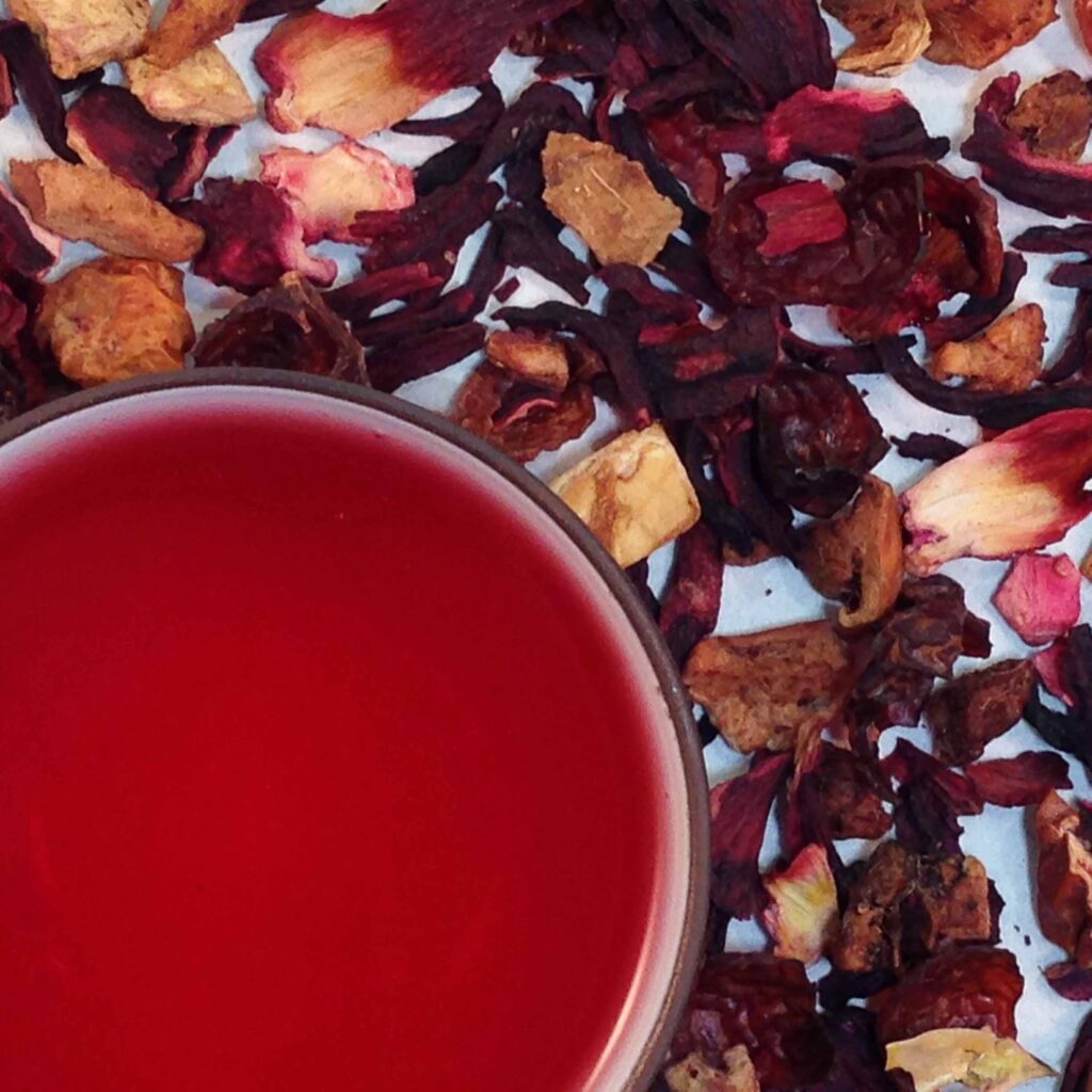 This is one of those happy marriages. Our Paradise Peach blend revolves around the heady flavors of peach, which many consider Colorado’s signature fruit. To that we add hibiscus, orange zest and rosehips, all of which flood the tea with healthy vitamin C and add rich color, aroma and bright flavor.