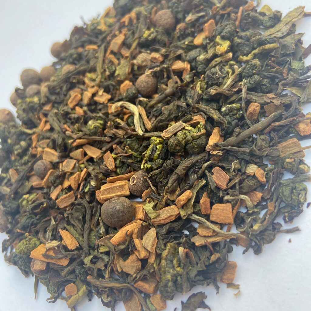 This beauty contains three (!) iterations of Camellia sinensis—green pu-erh, oolong and black. To that extremely stout base we add add two baking heroes: cinnamon and allspice. The combination captures the heady, perfumed essence of monkey bread. What a gift—for you or a loved one!