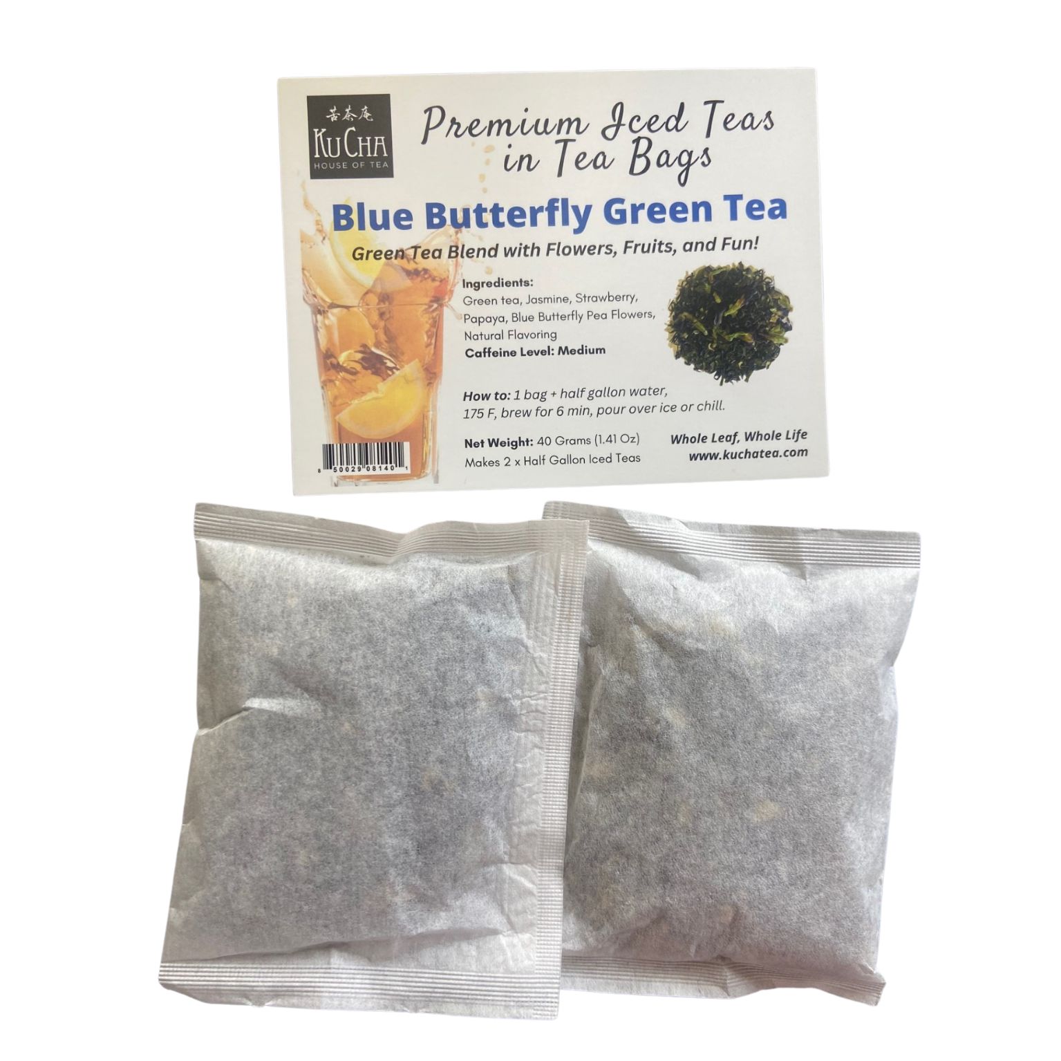 two large bags of Blue Butterfly Green teas to make 1 gallon of iced tea.
