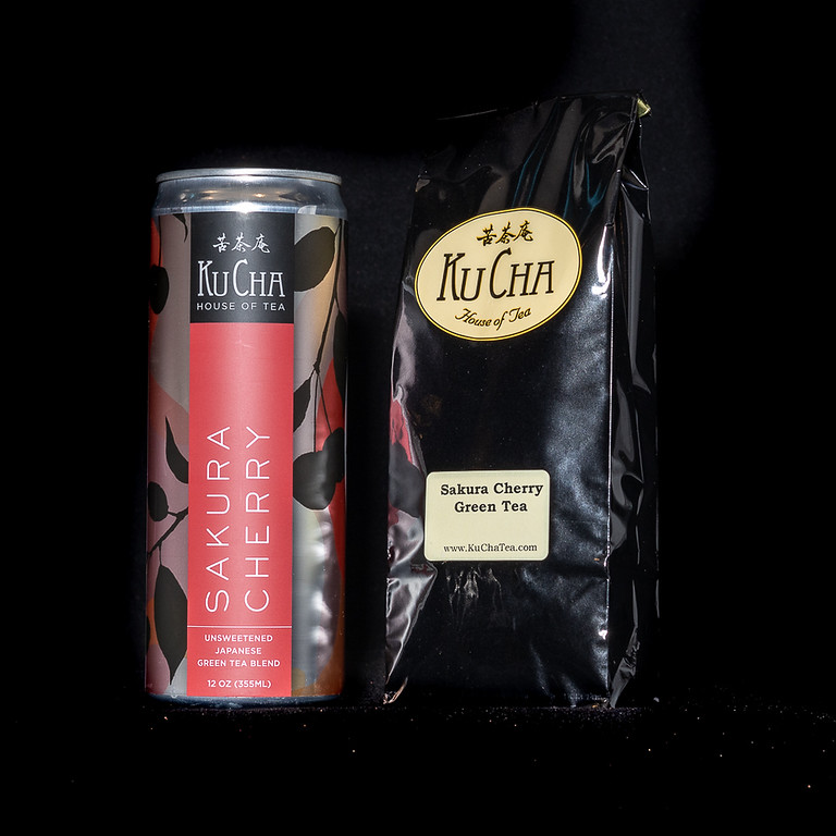 Iced tea made from Sakura Cherry Green Tea; in a 12 oz sleek can
