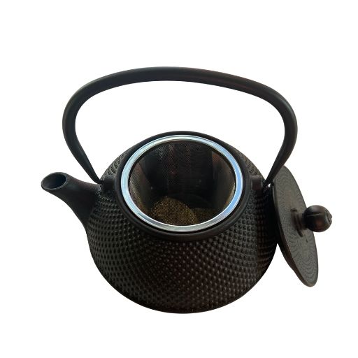cast iron teapot with stainless steel infuser