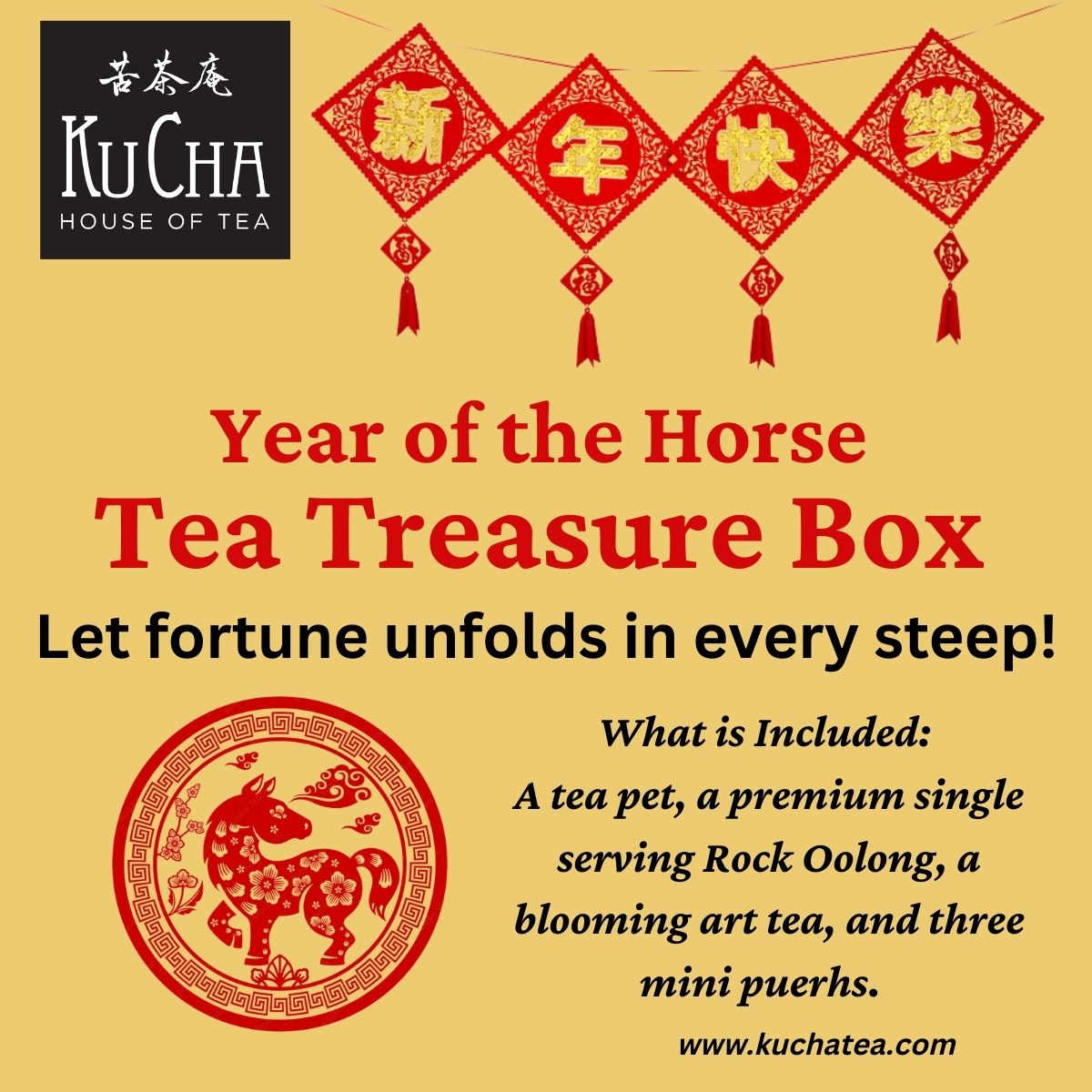 A limited-edition tea treasure box to celebrate the Year of the Horse! It includes a tea pet, a premium single serving Rock Oolong, a blooming art tea, and three mini puerhs. Open the box to find out which tea pet to pamper, which rock oolong to savor, and which art tea will bloom.