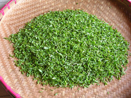 Jiang Su Province, China is one of the earliest and most important tea growing area. One of the most famous Chinese green teas: Bi Luo Chun, is grown and processed here. We visited this certified organic tea farm in 2010. From the photos you can see how workers picked up the tea buds, and still today, farmers make this tea by traditional hand process that has been passed down generation by generation.