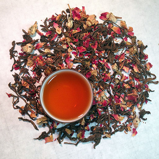 Rose petals add floral elegance to this pu-erh’s profound earthiness.